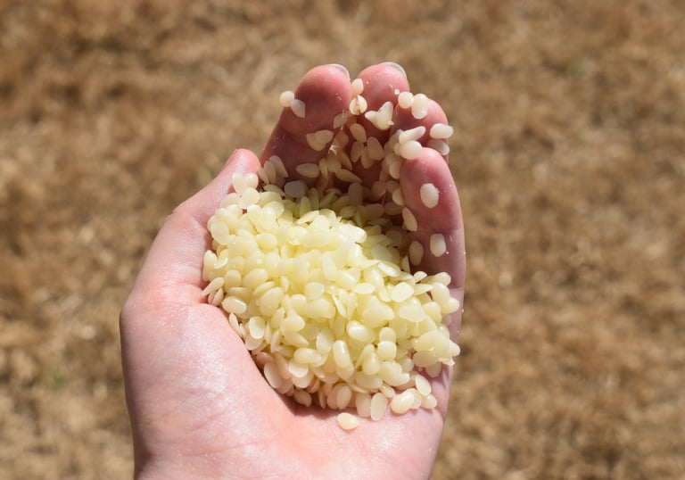 Pure beeswax serves as a natural protective balm, providing a breathable barrier that retains moisture without clogging pores. Packed with vitamin A and natural anti-inflammatory properties, it alleviates irritation, supports cell renewal, and protects against environmental harm, keeping the skin soft and well-hydrated.